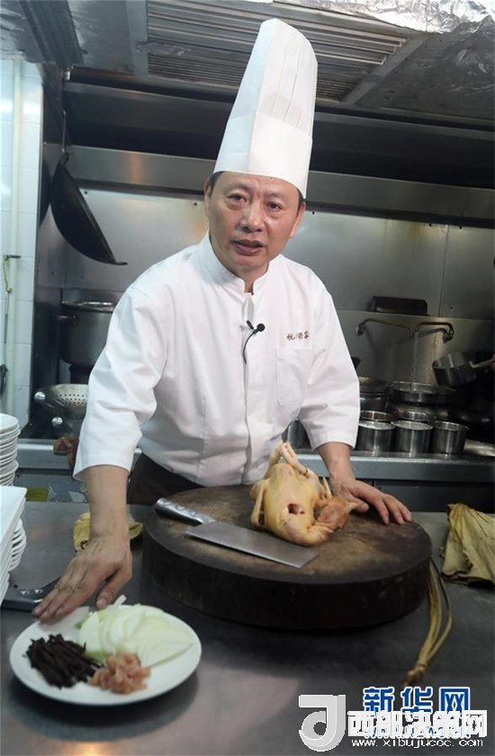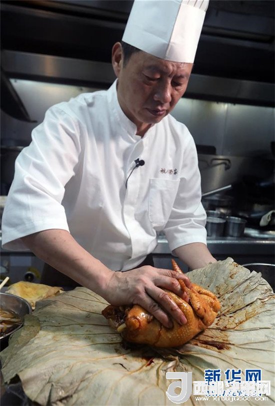 杭州酒家老板吳瑞康現(xiàn)場制作本店招牌菜“叫化雞”(6月16日攝)。新華社記者 李鵬 攝