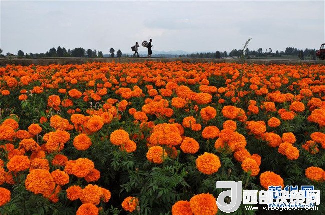 貴州畢節(jié)市威寧彝族回族苗族自治縣草海鎮(zhèn)萬(wàn)壽菊基地一景(2014年8月17日攝)。新華社發(fā) 楊文斌 攝