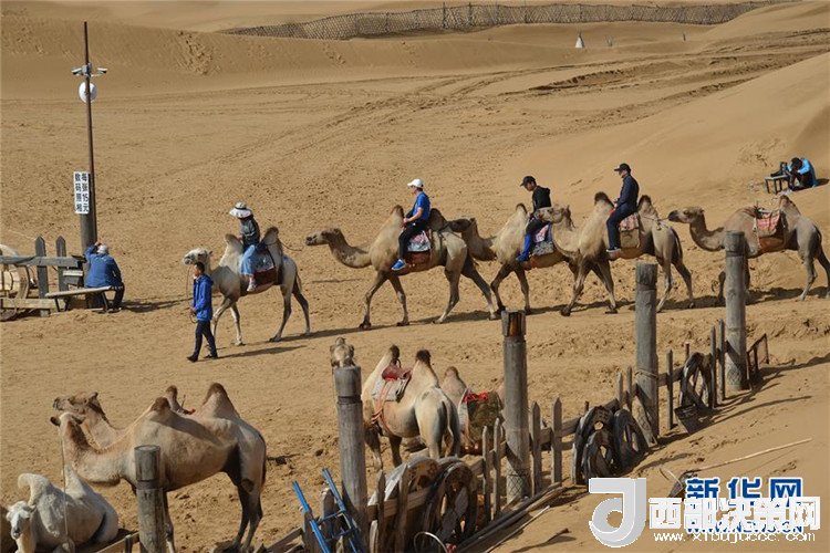 7月21日,在內(nèi)蒙古庫布其沙漠響沙灣景區(qū),游客體驗(yàn)騎駱駝。新華社記者 鄒予 攝