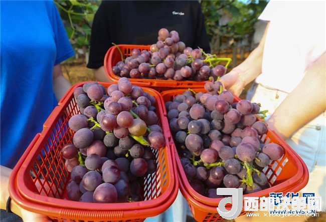 近日,江西省樟樹市現(xiàn)代農(nóng)業(yè)科技示范園內(nèi)的葡萄進入采摘期,吸引眾多游客前來觀光、采摘。近年來,該農(nóng)業(yè)園著力打造農(nóng)業(yè)科技示范與觀光度假為一體的旅游休閑項目,推動農(nóng)業(yè)、旅游業(yè)雙發(fā)展。