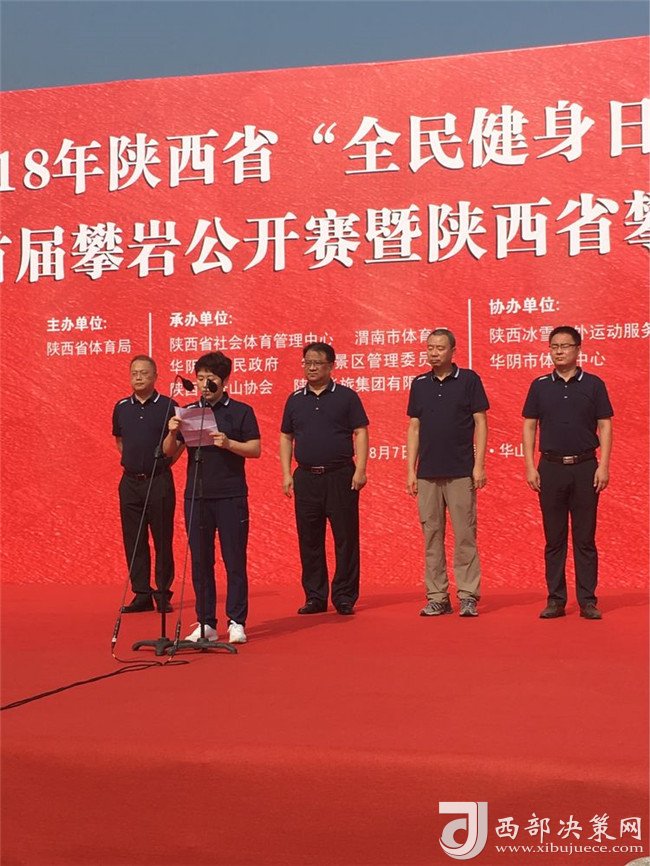 開幕儀式上,陜西華山旅游集團(tuán)有限公司副總經(jīng)理趙江峰代表華山旅游集團(tuán)有限公司致詞,他表示,向此次攀巖公開賽的開幕表示熱烈地祝賀,向出席開幕式地各位領(lǐng)導(dǎo)、各位來(lái)賓、運(yùn)動(dòng)員、裁判員表示熱烈地歡迎,向籌備的工作人員表示衷心的感謝!通過(guò)舉辦這項(xiàng)活動(dòng),旨在促進(jìn)陜西省旅游產(chǎn)業(yè)與體育事業(yè)的高度融合,彰顯華山旅游品牌形象和影響力,以此推動(dòng)攀巖運(yùn)動(dòng)在省內(nèi)的蓬勃發(fā)展。