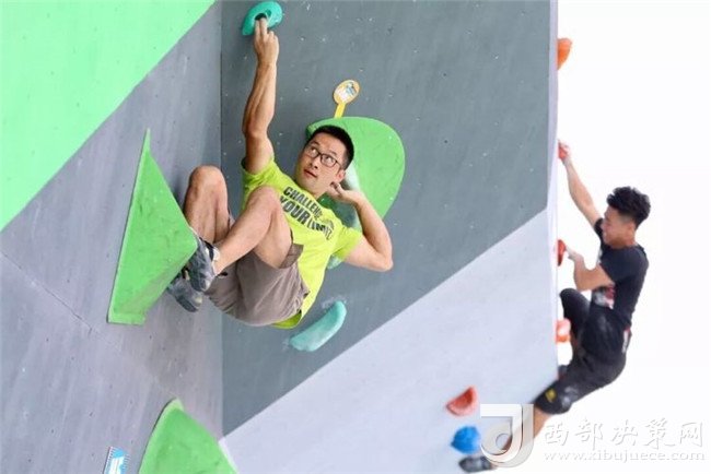 專業(yè)攀巖選手與資深攀巖愛好者在難度賽道進(jìn)行表演賽