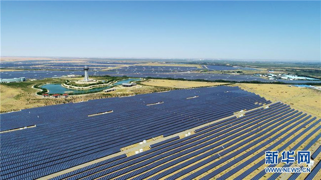 寧夏中衛(wèi)市沙漠光伏產(chǎn)業(yè)園光伏電站(9月7日無人機拍攝)。新華社記者王鵬攝