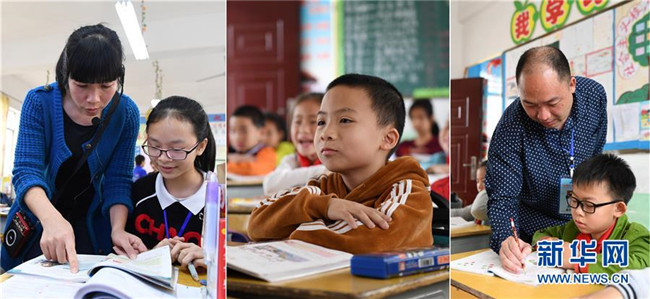 這是一張拼版照片,左圖為:在廣西南寧市馬山縣白山鎮(zhèn)合群初中,溫華芬老師在課后輔導(dǎo)學(xué)生功課(4月10日攝);中圖為:在馬山縣白山鎮(zhèn)同富小學(xué),侯宇宸在聽課(4月10日攝);右圖為:在馬山縣白山鎮(zhèn)同富小學(xué),侯瑞良老師在輔導(dǎo)學(xué)生功課(4月10日攝)。2017年9月,廣東茂名選派優(yōu)秀教師到廣西馬山縣支教。茂名市電白區(qū)木蘇中學(xué)老師溫華芬得知后,與在電白區(qū)陳村中學(xué)任教的丈夫侯瑞良積極響應(yīng),決定帶上9歲的兒子侯宇宸共同來到馬山縣,開展為期一年的支教活動(dòng)。新華社記者 陸波岸 攝