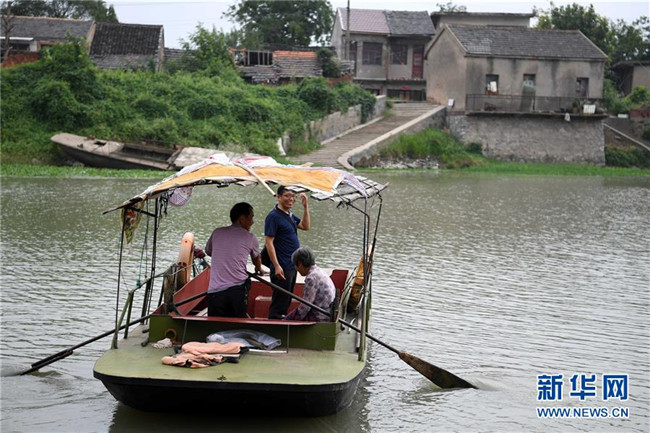 安徽含山縣運(yùn)漕鎮(zhèn)楊謝小學(xué)河北教學(xué)點(diǎn)教師汪開寬(中)在放學(xué)后乘船到島對面的集市買菜(2017年9月5日攝)。河北教學(xué)點(diǎn)所在的河北自然村四面環(huán)河,島上人口不足100人。30年前,師范學(xué)校畢業(yè)的汪開寬來到這里,開始了自己的教師生涯。近年來,學(xué)生數(shù)量慢慢減少到個(gè)位數(shù),其他老師陸續(xù)離開,最后只剩下汪開寬一人。然而為了島上的孩子們不用涉險(xiǎn)過河上學(xué),汪開寬依舊選擇了堅(jiān)守。新華社記者 劉軍喜 攝