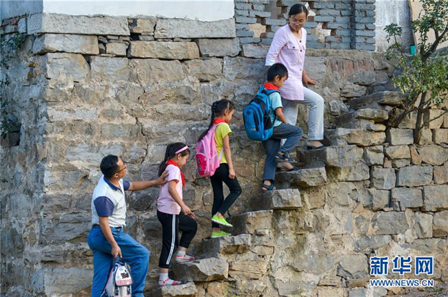 9月6日,福建閩清縣上蓮鄉(xiāng)中心小學(xué)教師張鐘在放學(xué)后送孩子們回家。2006年,“80后”教師張鐘投身鄉(xiāng)村教育事業(yè),主動(dòng)要求到偏遠(yuǎn)教學(xué)點(diǎn)任教。為了能安心工作,他還動(dòng)員妻子和父母都搬到上蓮鄉(xiāng)工作生活,幫他一起照顧?quán)l(xiāng)村學(xué)校里的孩子們。十多年來,張鐘扎根鄉(xiāng)村,堅(jiān)守在教書育人的崗位上。新華社記者 林善傳 攝