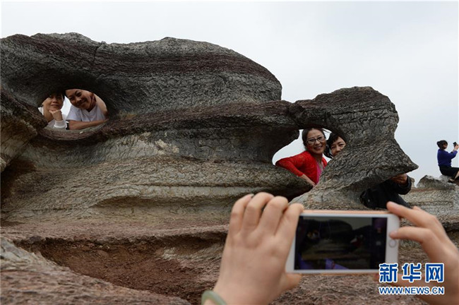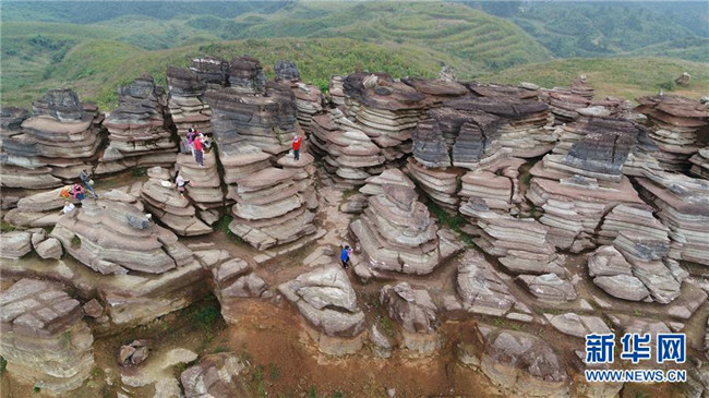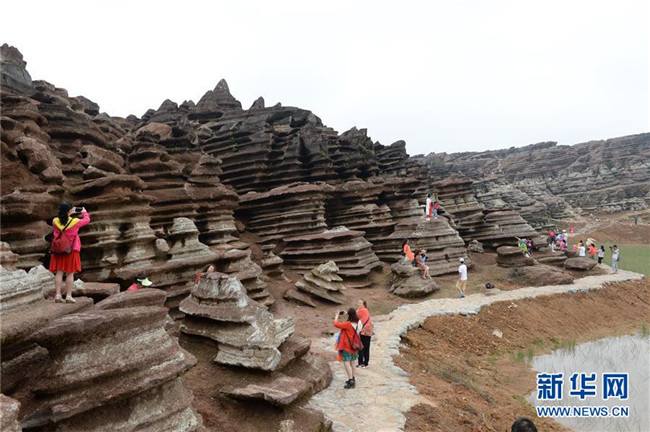貴州省松桃苗族自治縣盤石鎮(zhèn)的紅石林景區(qū)山石奇特,吸引眾多游人。 新華社記者 楊楹 攝