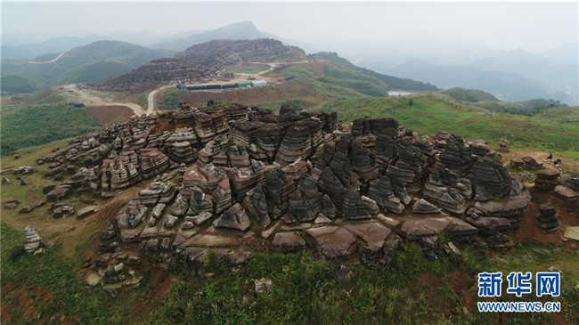 9月16日拍攝的貴州省松桃苗族自治縣盤石鎮(zhèn)紅石林景觀(無人機(jī)拍攝)。