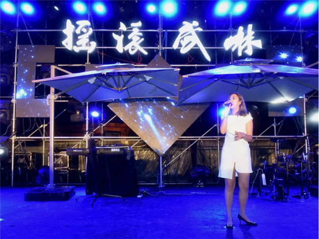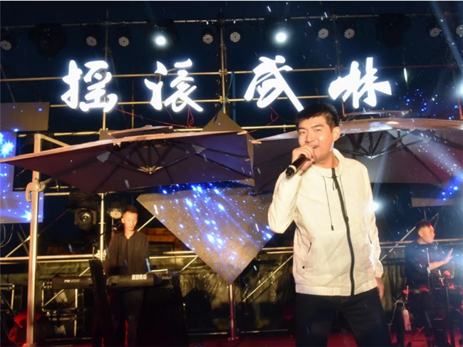 星空音樂趴于當晚18時30分正式開始,在層巒聳翠中,浩瀚星辰下,由原創(chuàng)搖滾實效樂隊帶來的動感音樂瞬間點燃全場,華旅集團營銷中心各位美女為大家?guī)韯痈鞋F(xiàn)代舞,馬超武術(shù)表演隊伍更是展現(xiàn)了劍、九節(jié)鞭、棍、拳的華夏男兒力量之美,DJ、MC電音律動,現(xiàn)場聽眾更是融入其中,服裝上的熒光粉在夜空中也化作點點星光,與天、地、舞臺融為一體,撩人電音牽手活力運動,燃爆初秋的第一把火!這是一個聞所未聞的華山“武林”。