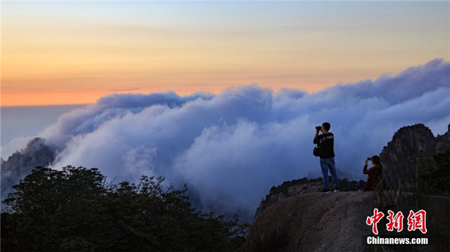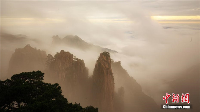 9月17日,秋雨洗禮后的安徽黃山風(fēng)景區(qū)霧氣繚繞,秋風(fēng)清爽。遠(yuǎn)處千峰疊嶂,互相競(jìng)秀,千谷萬(wàn)壑,云煙升騰。陣陣秋風(fēng),吹拂著云霧淡淡濃濃,天都峰、蓮花峰及西海群峰藏在其間,若隱若現(xiàn),幻若仙境。 葉永清 攝