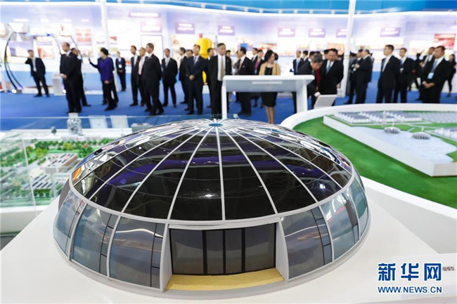 9月19日,觀眾在參觀展覽上展出的光伏住宅小屋模型。9月19日,寧夏回族自治區(qū)成立60周年大型成就展在銀川國際會(huì)展中心開幕。記者沈伯韓攝