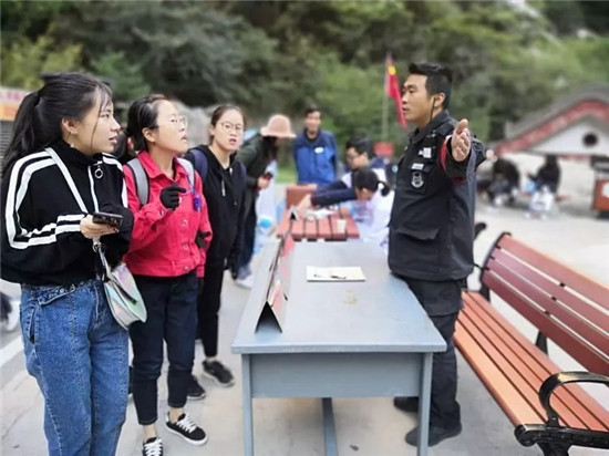 當有行動不便的游客游覽時、當有游客的手機丟失時、當游客的包掉到懸崖下時,第一時間出現(xiàn)在游客身邊,及時為游客解決困難,此時他們的行動是對游客最舒心的安慰。