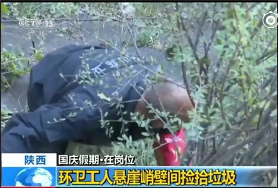 假期期間,隨著游客增多,景區(qū)內的垃圾也隨之增多。為了清理游客隨手丟棄在懸崖峭壁間的塑料袋、礦泉水瓶等垃圾,他們需要身系保險繩,冒著危險工作。