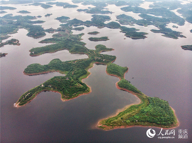 俯瞰長(zhǎng)壽湖,十幾個(gè)首尾相接的島嶼呈現(xiàn)出繁寫的魏碑體“壽”字狀。羅嘉 航拍俯瞰長(zhǎng)壽湖,十幾個(gè)首尾相接的島嶼呈現(xiàn)出繁寫的魏碑體“壽”字狀。羅嘉 航拍