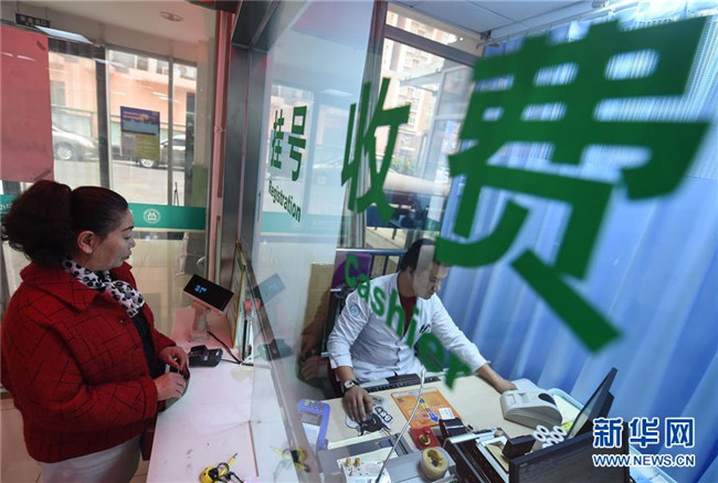 2017年4月8日,北京“醫(yī)藥分開”綜合改革正式在3600余家醫(yī)療機構(gòu)實施。這是市民在北京東花市社區(qū)衛(wèi)生服務(wù)中心掛號交錢。 新華社記者 羅曉光 攝