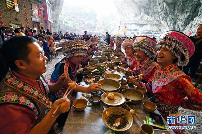 10月14日,興文石海世界地質(zhì)公園在園區(qū)內(nèi)擺起長(zhǎng)桌宴,迎接來自遠(yuǎn)方的賓客。