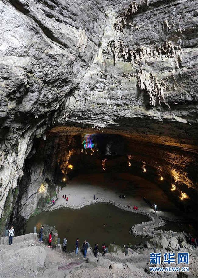 10月14日,游客在興文石海世界地質(zhì)公園的地下溶洞參觀。