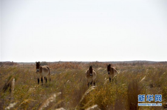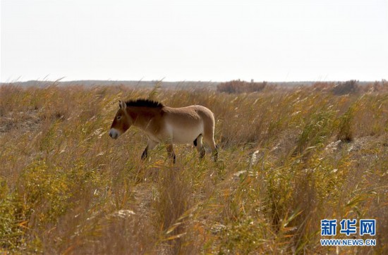 這是10月16日在敦煌西湖國家級自然保護區(qū)拍攝的普氏野馬。 新華社記者 胡偉杰 攝