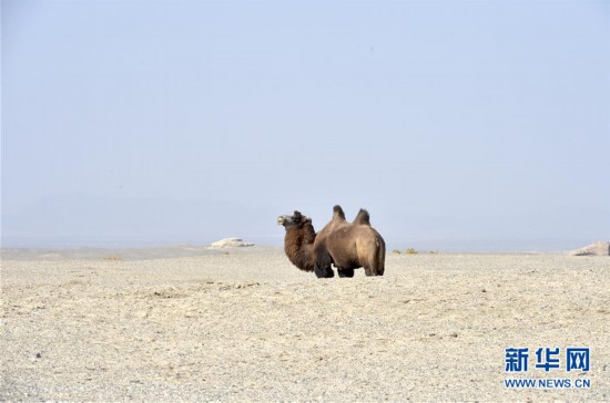 這是10月16日在敦煌西湖國家級自然保護區(qū)拍攝的野駱駝。 新華社記者 李笑 攝