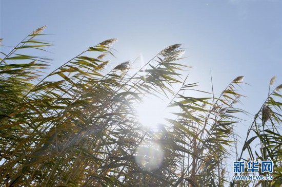 這是10月16日在敦煌西湖國家級自然保護區(qū)拍攝的蘆葦。 新華社記者 李笑 攝