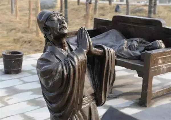 漢文帝劉恒,漢高祖第三子,為薄太后所生。高后八年(前180)即帝位。他以仁孝之名,聞于天下,侍奉母親從不懈怠。母親臥病三年,他常常目不交睫,衣不解帶;母親所服的湯藥,他親口嘗過后才放心讓母親服用。他在位24年,重德治,興禮儀,注意發(fā)展農(nóng)業(yè),使西漢社會穩(wěn)定,人丁興旺,經(jīng)濟得到恢復(fù)和發(fā)展,他與漢景帝的統(tǒng)治時期被譽為“文景之治”。