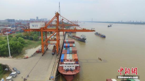 陽(yáng)邏武漢新港位于武漢天興洲以東70公里的長(zhǎng)江岸線(xiàn)上,是中國(guó)最大內(nèi)河航運(yùn)港口。中新社記者 鄭子顏 攝