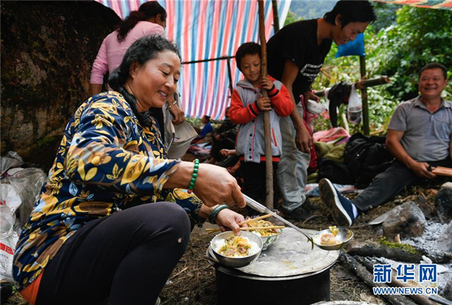 10月22日,在西藏林芝市墨脫縣墨脫鎮(zhèn)米日村臨時救災(zāi)安置點(diǎn),人們準(zhǔn)備吃飯。 受雅魯藏布江堰塞湖影響的群眾被轉(zhuǎn)移到臨時救災(zāi)安置點(diǎn),這里秩序井然,群眾基本生活得到保障。10月17日,雅魯藏布江米林縣加拉村附近發(fā)生山體滑坡,堵塞河道,形成堰塞湖。 新華社記者 劉東君 攝