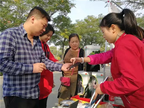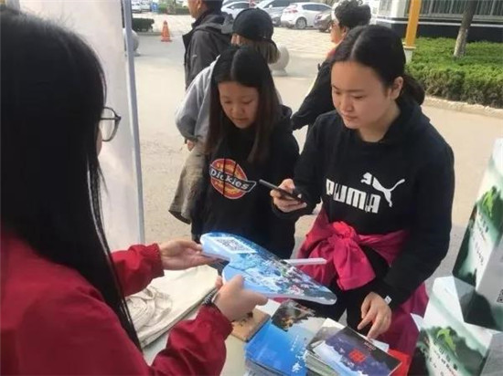 營銷中心工作人員耐心細(xì)致地幫助游客參與活動