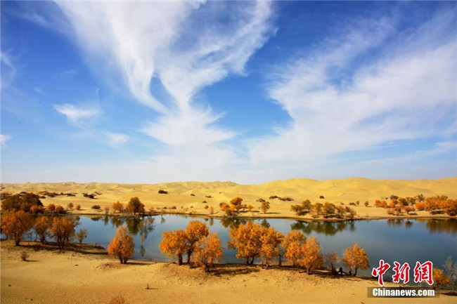 10月底,新疆尉犁縣國家沙漠公園里的羅布湖清澈見底的湖水,與塔克拉瑪干沙漠、天然胡楊渾然一體,讓來自海內外的乘船游湖的游客怦然心動,這是還是一片未被開發(fā)的凈土。據(jù)悉,羅布湖1.2萬畝水域面積,湖泊水深7米的優(yōu)良水質,有著豐富的漁業(yè)資源。該沙漠公園是集休閑度假、羅布人文化體驗、沙漠旅游、生態(tài)宣教為一體的國家級沙漠公園。李飛攝
