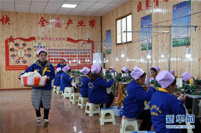 近日,甘肅省臨夏回族自治州東鄉(xiāng)族自治縣大樹鄉(xiāng)“扶貧車間”投入使用,40多名留守婦女在家門口實現(xiàn)就業(yè)。今年以來,共青團臨夏州委積極爭取東西協(xié)作城市廈門市的支持,建立“扶貧車間”,同時組織培訓農村留守婦女,實現(xiàn)就地就業(yè)增收。新華社記者 范培珅 攝