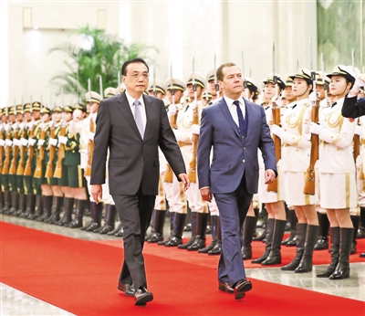 李克強強調(diào),中方愿同俄方共同致力于維護世界貿(mào)易組織的基本原則和精神,維護自由貿(mào)易,倡導(dǎo)多邊主義。中方愿將“一帶一路”倡議同歐亞經(jīng)濟聯(lián)盟更好對接,共商共建共享,也歡迎其他各方積極參與構(gòu)建開放平臺。