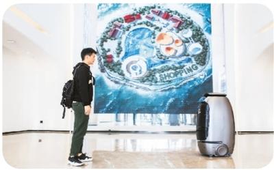 在阿里的未來(lái)酒店里,機(jī)器人正在服務(wù)客人。