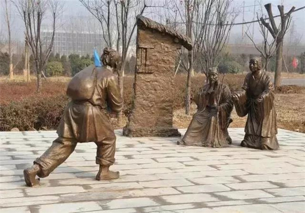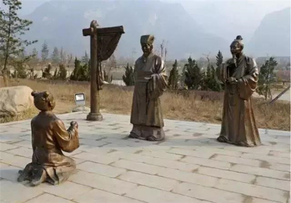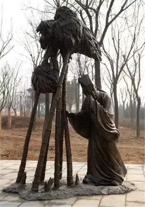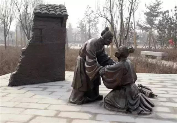 丁蘭,相傳為東漢時(shí)期河內(nèi)人,幼年時(shí)父母雙亡,他經(jīng)常思念父母的養(yǎng)育之恩,于是用木頭刻成雙親的雕像,事之如生,凡事均和木像商議,每日三餐敬過(guò)雙親后自己方才食用,出門(mén)前一定稟告,回家后一定面見(jiàn),從不懈怠。久之,其妻對(duì)木像便不太恭敬了,竟好奇地用針刺木像的手指,而木像的手指居然有血流出。丁蘭回家見(jiàn)木像眼中垂淚,問(wèn)知實(shí)情,遂將妻子休棄。