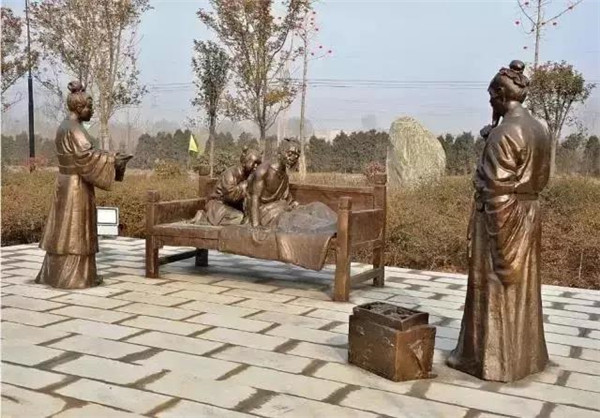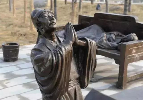 漢文帝劉恒,漢高祖第三子,為薄太后所生。高后八年(前180)即帝位。他以仁孝之名,聞?dòng)谔煜拢谭钅赣H從不懈怠。母親臥病三年,他常常目不交睫,衣不解帶;母親所服的湯藥,他親口嘗過(guò)后才放心讓母親服用。他在位24年,重德治,興禮儀,注意發(fā)展農(nóng)業(yè),使西漢社會(huì)穩(wěn)定,人丁興旺,經(jīng)濟(jì)得到恢復(fù)和發(fā)展,他與漢景帝的統(tǒng)治時(shí)期被譽(yù)為“文景之治”。