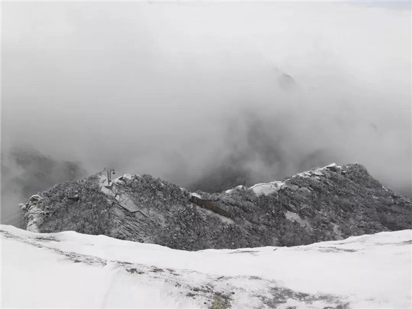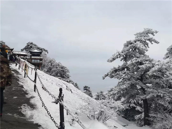 17日凌晨的一場大雪將西岳華山變成白雪皚皚的世界,白雪與蒼翠的華山奇松、靈動的云海交相輝映,如夢如幻;滿山遍野玉樹瓊花,樹枝上通體的霧凇晶瑩剔透,繪就冬日畫境,美不勝收,游人如置身人間仙境。