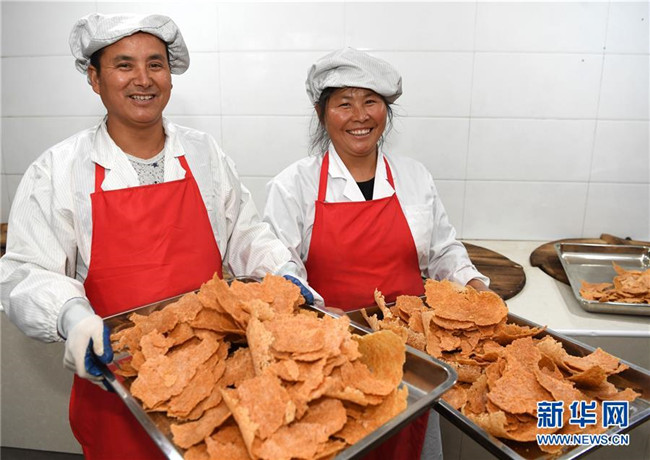 今年49歲的汪明祥和47歲的姚新花是安徽省涇縣黃村鎮(zhèn)沙元村的一對(duì)農(nóng)民夫妻。2013年,汪明祥突發(fā)疾病花光了家里的積蓄,并喪失了一定的勞動(dòng)能力。2014年,汪明祥一家被確定為建檔立卡貧困戶。為了靠自己的雙手實(shí)現(xiàn)脫貧,汪明祥和妻子姚新花在家里開(kāi)始生產(chǎn)手工鍋巴,雖然收入不高,但是經(jīng)濟(jì)狀況慢慢好轉(zhuǎn)起來(lái),于2016年順利實(shí)現(xiàn)脫貧。 脫貧后的夫妻倆開(kāi)始琢磨如何進(jìn)一步發(fā)展自家的手工鍋巴生意。今年,汪明祥和妻子姚新花利用當(dāng)?shù)胤鲐毿☆~貸款和自籌資金創(chuàng)辦的強(qiáng)源鍋巴廠投產(chǎn)。由于口味地道,價(jià)格不高,汪明祥家的鍋巴受到市場(chǎng)的歡迎,平均每天生產(chǎn)鍋巴50余斤,日均銷(xiāo)售額400多元。“不等不靠,甩窮帽,我們夫妻倆靠手藝脫了貧,也有信心實(shí)現(xiàn)致富。”汪明祥說(shuō)。新華社記者 劉軍喜攝