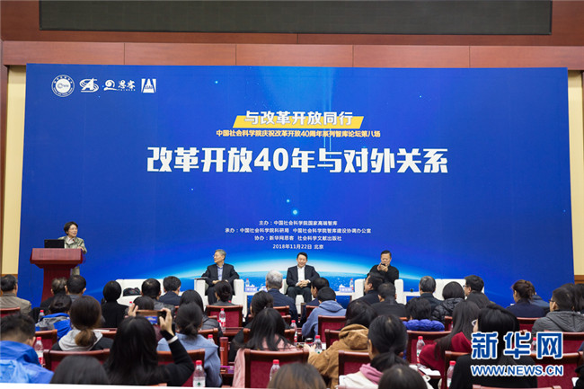 11月22日,中國社科院“與改革開放同行”系列智庫論壇第八場(chǎng)在北京開幕,本場(chǎng)主題為“改革開放40年與對(duì)外關(guān)系”。“與改革開放同行”系列智庫論壇是為慶祝中國改革開放40周年,由中國社會(huì)科學(xué)院國家高端智庫主辦,中國社會(huì)科學(xué)院科研局、中國社會(huì)科學(xué)院智庫建設(shè)協(xié)調(diào)辦公室承辦,新華網(wǎng)思客、社會(huì)科學(xué)文獻(xiàn)出版社協(xié)辦推出的。 新華網(wǎng)記者 李林 攝