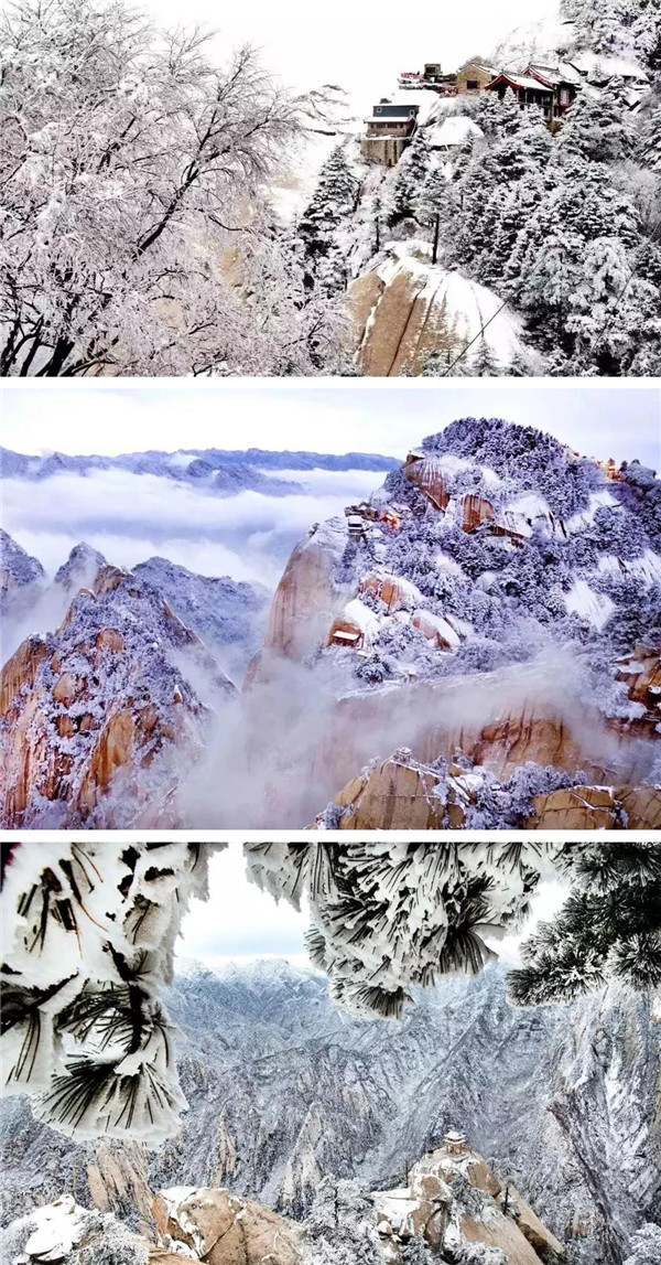 華山四季景色神奇多變,云華山、霧華山、雪花山,華山從山麓到山頂氣溫直線(xiàn)遞減,山上年平均氣溫6.8度。