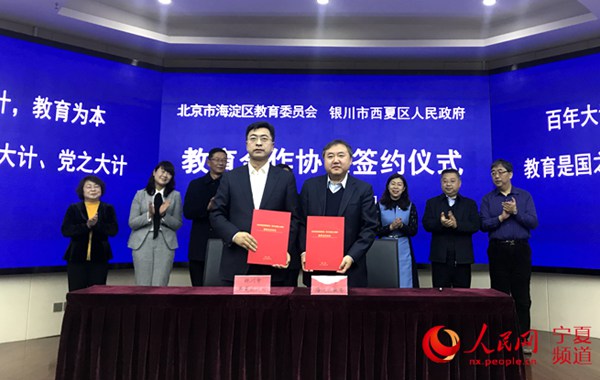 11月28日,京銀教育合作簽約儀式在銀川中關(guān)村創(chuàng)新創(chuàng)業(yè)中心舉行,北京市海淀區(qū)教委和銀川市西夏區(qū)人民政府簽署了教育合作協(xié)議;北京市中關(guān)村中學(xué)與銀川市中關(guān)村中學(xué)簽署了結(jié)對共建協(xié)議。
