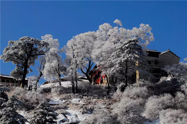 雪落華山,圣潔的雪花把華山妝扮得分外妖嬈嫵媚,平日陡峭的巖石,象穿著潔白的羽衣,宛若天仙般亭亭玉立于峰頭路旁,似向游人拂疑,微笑致意,最讓為之從心里震顏起敬的是,華山雪中松樹(shù)的雄姿與風(fēng)情。