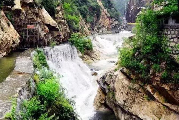仙峪,又名車箱谷,在華山峪西,與華山峪僅一嶺之隔。傳說(shuō)古時(shí)黃初平、黃初起弟兄在此牧羊成仙,因而得名。仙峪深五十余里,峪道窄狹清幽,山路崎嶇蜿蜒,河流湍急,山石險(xiǎn)峻,多處路段鑿崖,加棧凌空通過。進(jìn)峪五里處,有斜嶺橫阻,令人有谷盡路絕之感,然越嶺橫度,又平添柳暗花明的情趣。