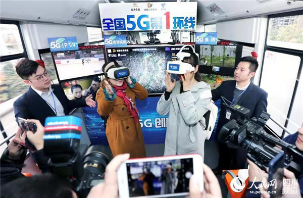 人民網成都12月5日電  在時速40公里的公交車上,酣暢淋漓體驗VR、視頻連線IFS與臥龍大熊貓基地、暢快玩一把云游戲……5日,全國首條5G精品環(huán)線在成都正式開通,在全國率先實現(xiàn)5G外場試商用。