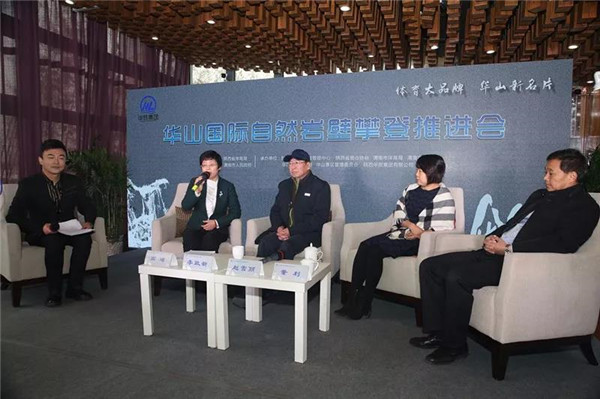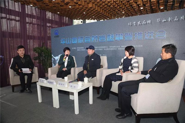 會上,渭南市政府副秘書長李曉京致歡迎詞,集團副總經理趙江鋒對華山及周邊旅游資源進行了介紹,攀巖名將、洲際定線員邱洪樹介紹了華山巖壁考察情況,來自英國的攀巖運動員Eli Hardie Howes向與會人員分享了華山巖壁攀登的感受。