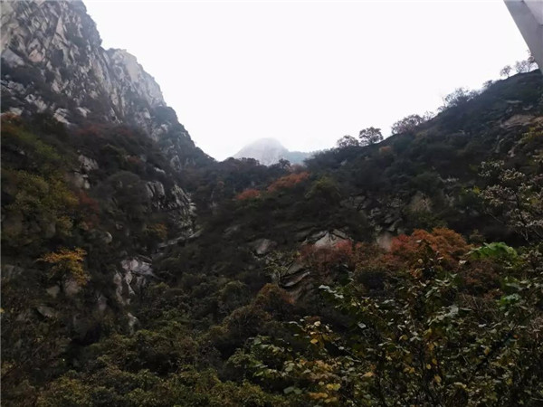 山路上,峻拔的山巖上爬滿了紅黃相間的樹木,云霧繚繞,一路上溪水潺潺,鳥鳴歡歌,石階古寺下,秋風微涼,拋開一切雜念,心中只有這北方的深秋下,這一條古老的華山路。