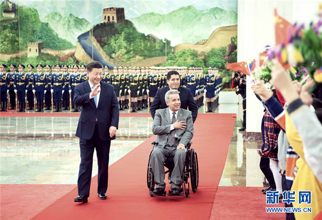 12月12日,國(guó)家主席習(xí)近平在北京人民大會(huì)堂同厄瓜多爾總統(tǒng)莫雷諾舉行會(huì)談。這是會(huì)談前,習(xí)近平在人民大會(huì)堂北大廳為莫雷諾舉行歡迎儀式。 新華社記者 李濤 攝