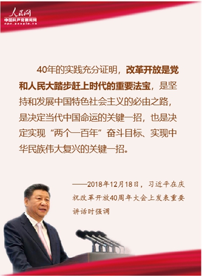 40年的實踐充分證明,改革開放是黨和人民大踏步趕上時代的重要法寶,是堅持和發(fā)展中國特色社會主義的必由之路,是決定當代中國命運的關(guān)鍵一招,也是決定實現(xiàn)“兩個一百年”奮斗目標、實現(xiàn)中華民族偉大復(fù)興的關(guān)鍵一招。