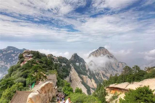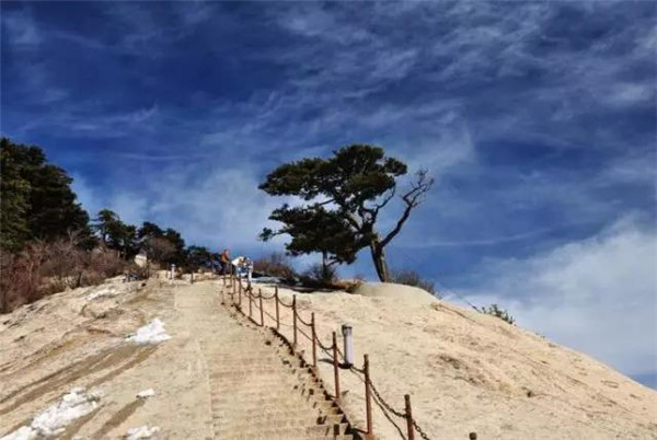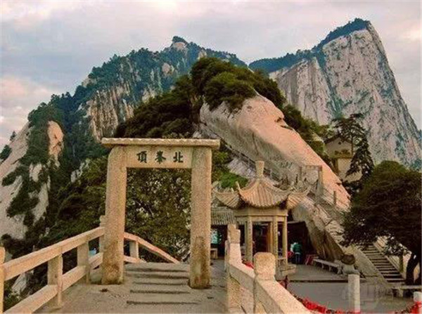 北峰海拔1614米,為華山主峰之一,因位置居北得名。北峰四面懸絕,上冠景云,下通地脈,巍然獨(dú)秀,有若云臺(tái),因此又名云臺(tái)峰。唐李白《西岳云臺(tái)歌送丹丘子》詩(shī)曾寫到:“三峰卻立如欲摧,翠崖丹谷高掌。白帝金精運(yùn)元?dú)猓魃徎ㄔ谱髋_(tái)。”