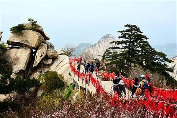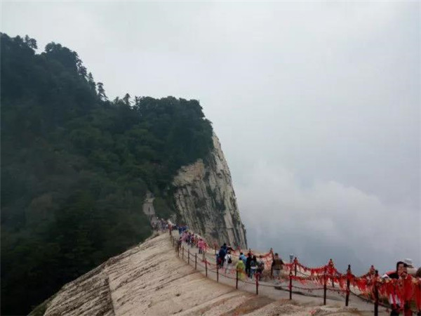 魏晉南北朝時(shí),還沒有通向華山峰頂?shù)牡缆?。直到唐朝,隨著道教興盛,道徒開始居山建觀逐漸在北坡沿溪谷而上開鑿了一條險(xiǎn)道,形成了"自古華山一條路"。