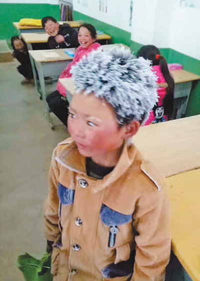去年初,小滿因為頭頂著冰霜上學(xué)而被稱為“冰花男孩”?!≠Y料圖片 |