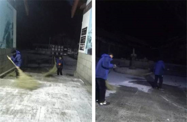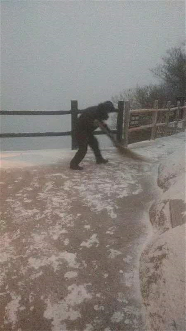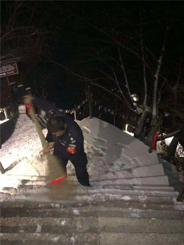 天還沒(méi)亮,主峰區(qū)的工作人員,分路段開(kāi)始清掃積雪。